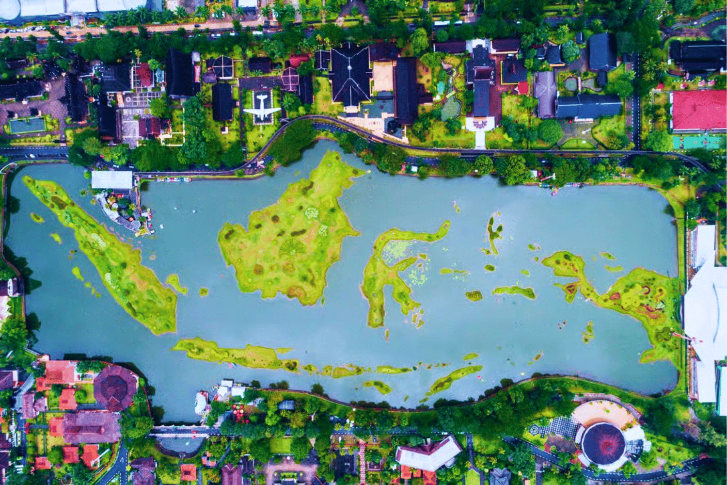 Then, go to the Beautiful Indonesia Miniature Park (Taman Mini Indonesia Indah), a large theme park on the outskirts of Jakarta. The park has miniature replicas of all Indonesian islands in a central lake, with pavilions representing the 33 provinces of Indonesia around it. Each pavilion features traditional architectural styles, cultural items, and exhibits.